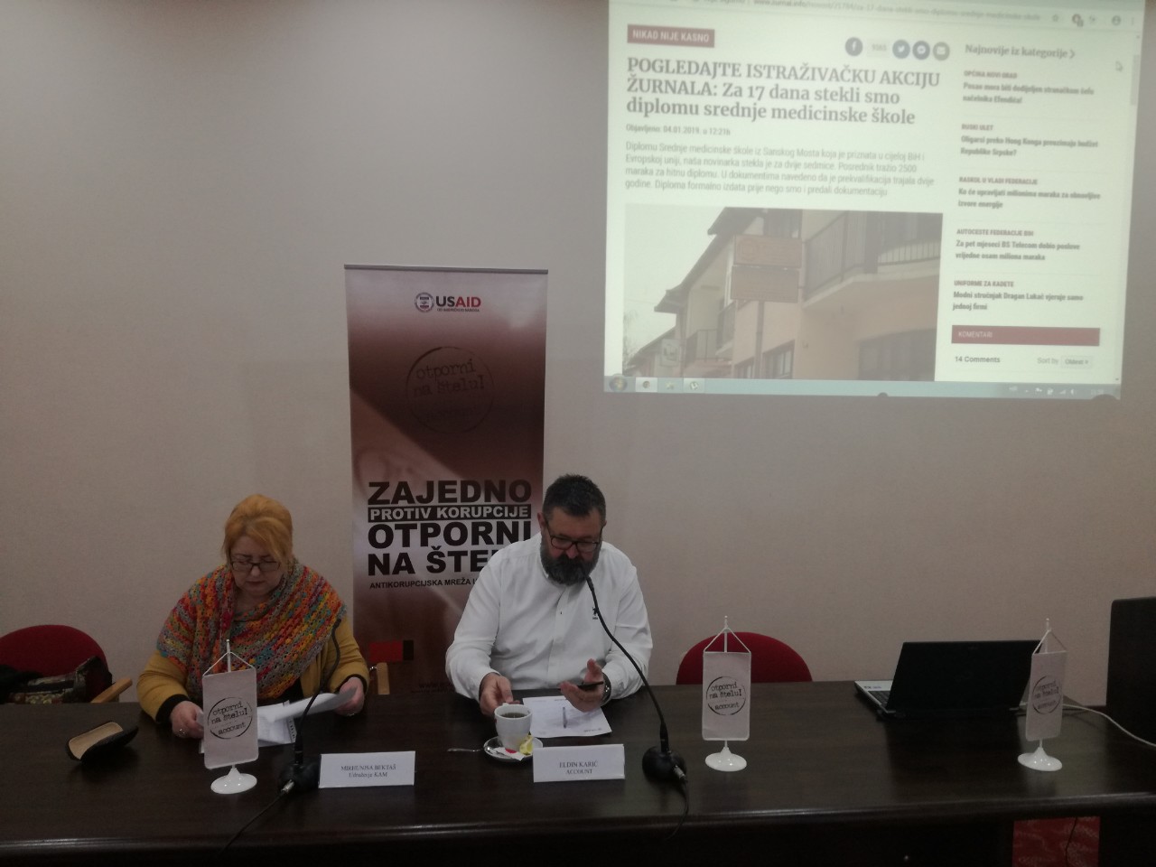 - Osoba koja je omogućila kupovinu diplome i dalje je na svom radnom mjestu. Tužilaštvo koje je trebalo istraživati slučaj kupovine diplome odustalo je uz objašnjenje da nemaju osnova za svoj angažman.Tužilaštvo opet nije ništa uradilo, osim što traži načine da pokaže da nije nadležno za postupanje. Nakon otkrića afere “Diploma” čuli smo da su pokrenute inicijative za reviziju diploma zaposlenika državnih institucija. Međutim, Parlament Bosne i Hercegovine neće provesti reviziju, uz obrazloženje Agencije za zaštitu ličnih podataka, da bi bilo narušeno ljudsko dostojanstvo zaposlenih?! A pita li se iko da li je narušeno ljudsko dostojanstvo građana – upozorio je Eldin Karić, direktor Mreže ACCOUNT.